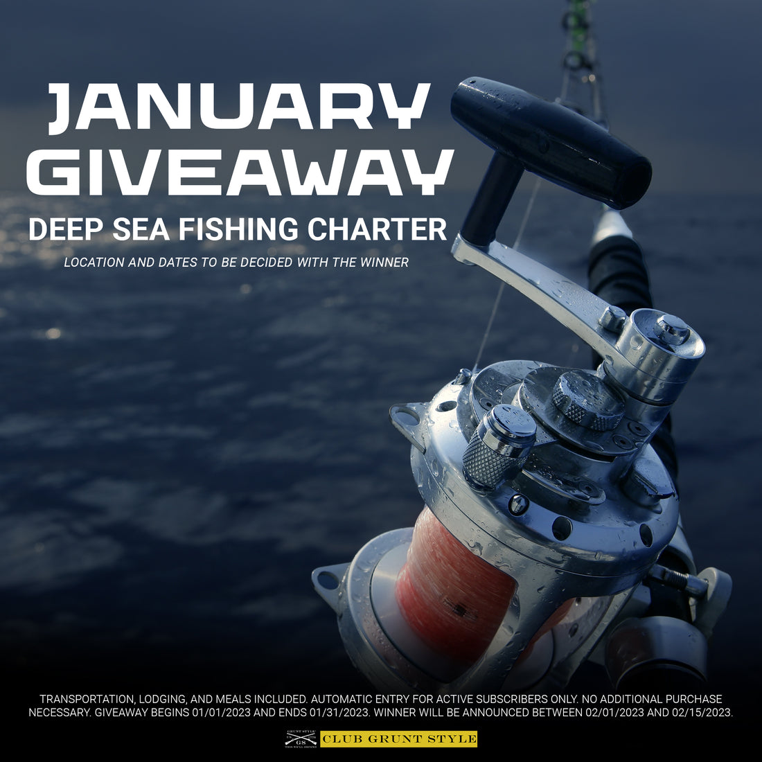 As a Club Grunt Style member you are entered to win a Deep Sea Fishing Charter Getaway. Transportation, lodging and meals to be included.