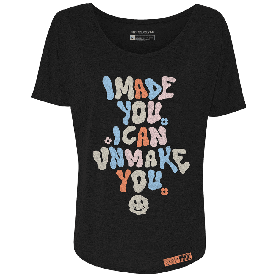 Empower the mom in your life with our Women's Unmake You Slouchy T-Shirt in Black! This tee speaks for itself: moms are powerful, and they get things done. Show your appreciation with this comfortable, slouchy shirt that will remind her that she brought you into this world and she can take you out of it!