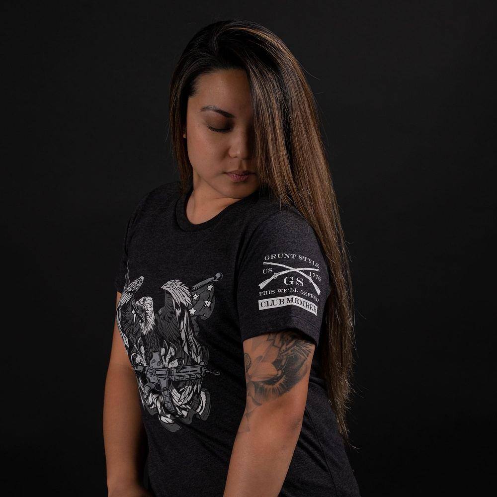 Every month, Club Grunt Style designs a shirt that is just one step more patriotic than the last. What's more Patriotic than an eagle, guns, and the Stars and Stripes? Seriously, this shirt is everything America stands for in one design, every Patriot should own this shirt. Shop this exclusive Club Grunt Style December Graphic Now!