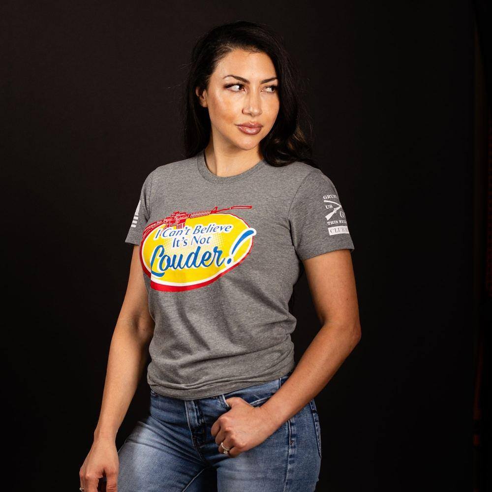 Treat yourself to the 2023 October Club tee--"Can't Believe It's Not Louder". This edgy 2A design with its firearms and Grunt Style Twist won't be refused. Don't miss out, grab yours now and display your Shirt of the Month along with your guns and a messy bun!