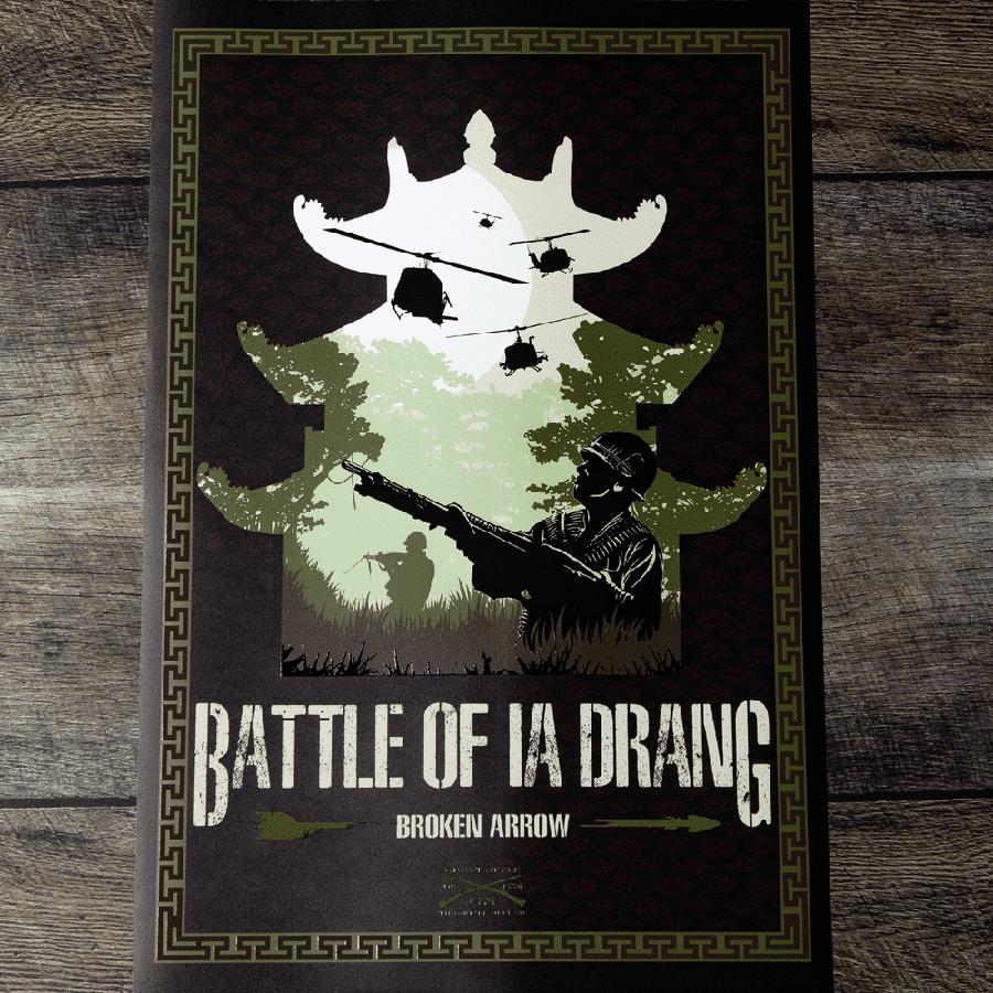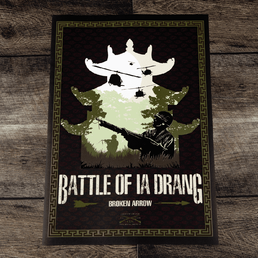Celebrate American heroes with this striking Battle of IA Drang poster: experience the history and show pride in our country with inspiring patriotic gear!