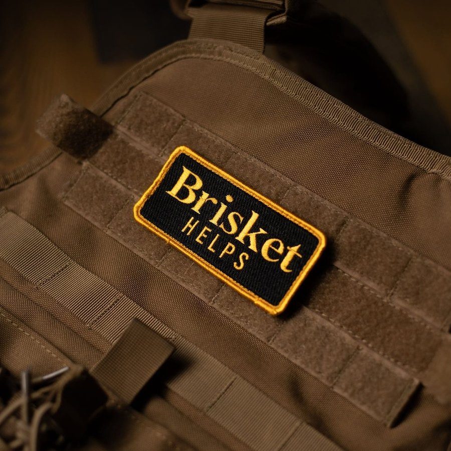 When life throws you curveballs, the answer is simple: brisket helps. The Brisket Helps Patch is for those who know that a perfectly smoked brisket can turn any bad day around. Whether you're decking out your gear, jacket, or pack, this patch is your bold reminder that good food and a little humor can solve anything.