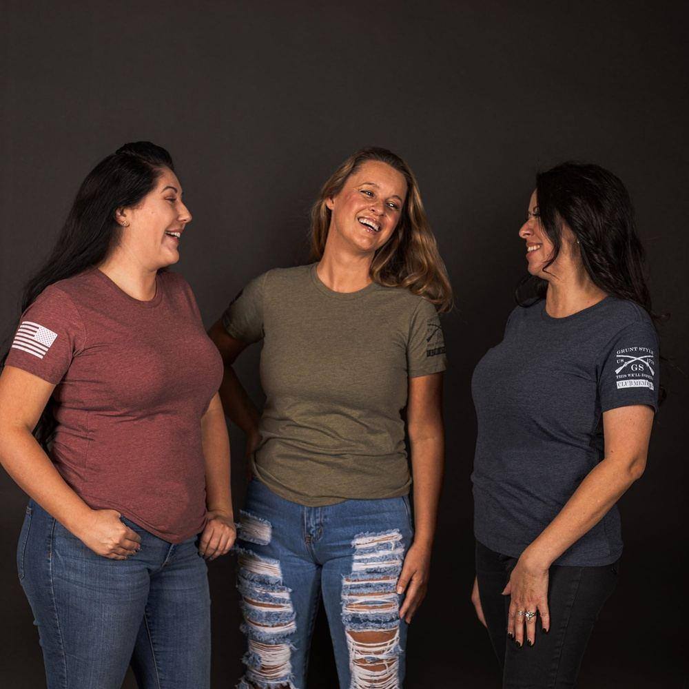 Our Club Grunt Style Women's Basic Heather Light Olive Tees are crafted with the following details: