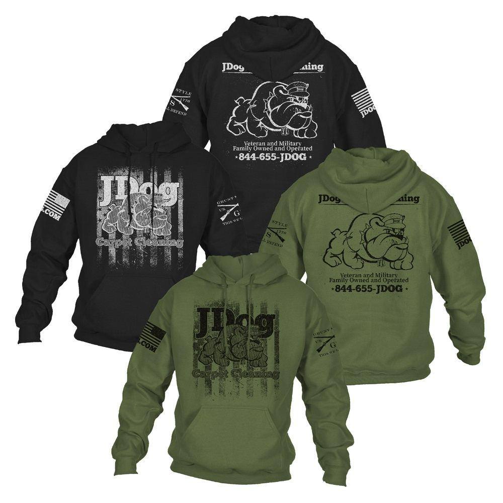 Gear up here for JDog Hoodies! Available in Black or Military Green.