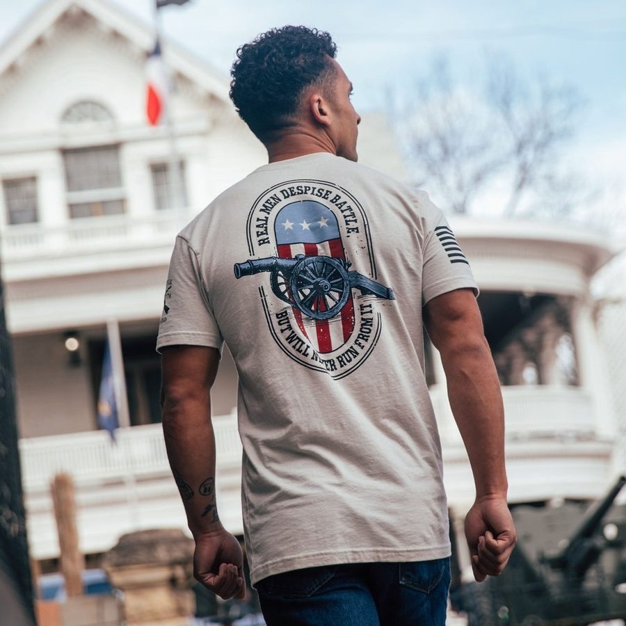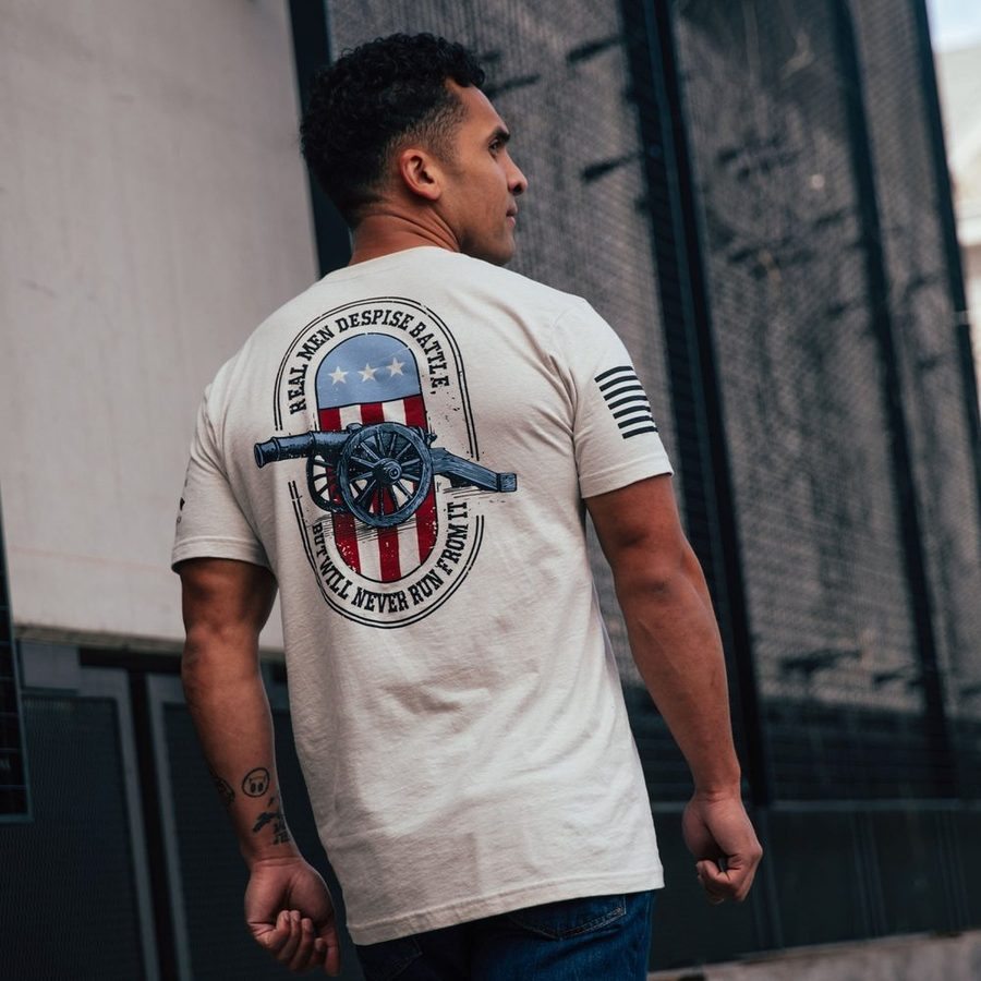 “Real men despise battle, but will never run from it.” That’s not just a quote—it’s a creed. The Never Run T-Shirt in Sand is for the warriors who understand the cost of combat but never flinch when it’s time to stand their ground. Inspired by those who carry the scars of service and the weight of responsibility, this tee is all about honor, grit, and never backing down.