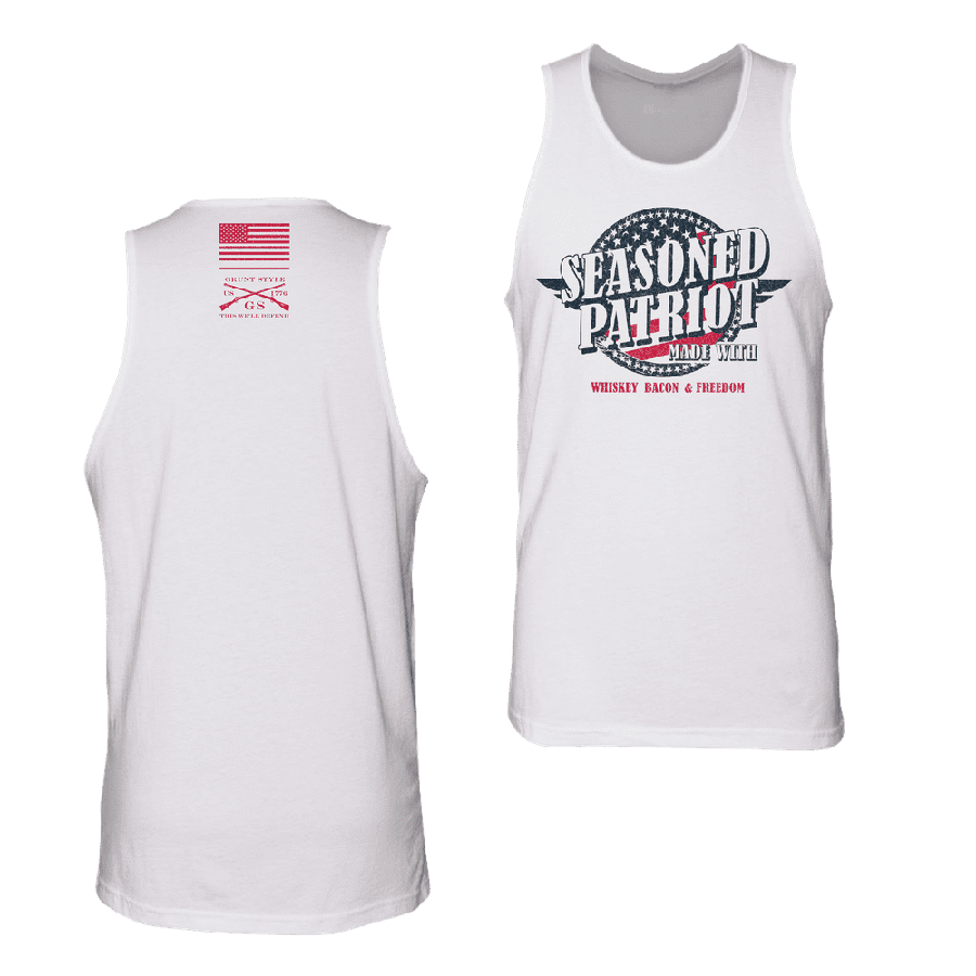 27.99Mens Other1776party250bday4thJuly2025PromoBFCM2025BFPreview2025BG Discount CodeBOGO50Aug25BOGO50TanksBOGO50Teescategory: Graphiccollection: Patrioticcollection_mens_graphicscolor: WhiteDec13FlashDec2025Promo20Offend of summerExtroverted PatriotFDGG25FDGG25Grillfrontback: Front Graphicgender: MenGraphic Tees and TanksGSD20influencerLaborDayGrillingLaborDayPromo2025MarketingLaborDayPromo2025MarketingAllmaterial: Poly/Cotton BlendMenMen'smen-size-chartMilitary Discount CentralOct2025PregameOct2025PregameAllPatrioticpatriotic apparelPatriotic Collectionproductype: Graphic Topsproductype: Tees & TanksRotary Digital Elevatorseasoned patriotsitewideSMS20StackableTailgatingtankTank TopTank TopstankstanktopsTKShoptype: Tank TopVeterans Day 2025VetsDay2025Whitehttps:files/GS7098_WEB-READYARTFRONT.pnghttps:files/GS7098_WEB-READYARTBACK.pnghttps:files/BlankPoster_2000x2000_V7_GS7098SeasonedPatriotTank-White.jpghttps:files/BlankPoster_2000x2000_V1_GS7098SeasonedPatriotTank-White.jpghttps:files/BlankPoster_2000x2000_V5_GS7098SeasonedPatriotTank-White.jpg43205378867251Small22.3927.99https:files/GS7098_WEB-READYSTACKED.pnghttps://www.gruntstyle.com/products/seasoned-patriot-tank-white?variant=43205378867251InStockSmall43205378932787Medium22.3927.99https:files/GS7098_WEB-READYSTACKED.pnghttps://www.gruntstyle.com/products/seasoned-patriot-tank-white?variant=43205378932787InStockMedium43205378834483Large22.3927.99https:files/GS7098_WEB-READYSTACKED.pnghttps://www.gruntstyle.com/products/seasoned-patriot-tank-white?variant=43205378834483InStockLarge43205378965555XLarge22.3927.99https:files/GS7098_WEB-READYSTACKED.pnghttps://www.gruntstyle.com/products/seasoned-patriot-tank-white?variant=43205378965555InStockXLarge432053789000192XLarge22.3927.99https:files/GS7098_WEB-READYSTACKED.pnghttps://www.gruntstyle.com/products/seasoned-patriot-tank-white?variant=43205378900019InStock2XLarge