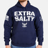 Our USN- Extra Salty Hoodies in Navy are crafted with the following details: