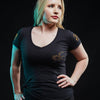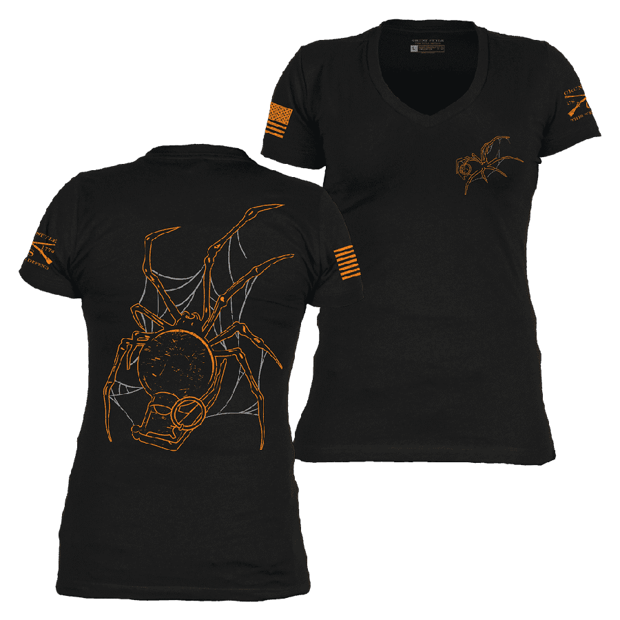 Get spooky with the Women's Arachnoblast V-Neck. This black tee features a playful spider design, perfect for Halloween or any day you feel like creeping it real. With a flattering V-neck and a fun graphic, it’s a must-have for your spooky season collection.