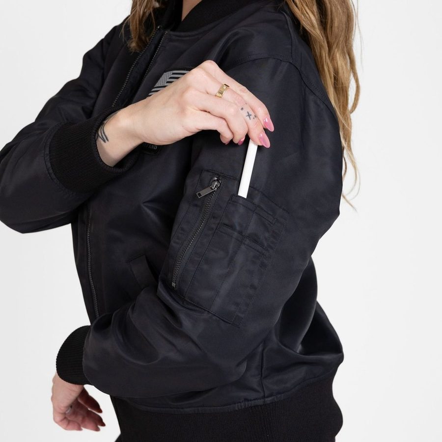 Gear up with grit and serve looks that command attention. The Women's Stealth Bomber Jacket in Black brings military-inspired design straight to the front lines of everyday life. This jacket is built for warriors—those who hold the line at home, on the job, or wherever duty calls.