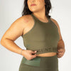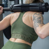 This is next-level training! This sports bra is for the stylish badass looking to up her gym fits! The Women's Racerback Sports Bra - Olive is designed to give you the most comfort when you are sweating and training hard! Try it out for yourself by ordering today! This sports bra is a must-have for the ambitious athlete. Crafted with you in mind, you'll have complete confidence while you sweat and strive for your goals. Step up your fitness look and get ready to dominate the gym - order the Women's Racerback Sports Bra - Olive today!