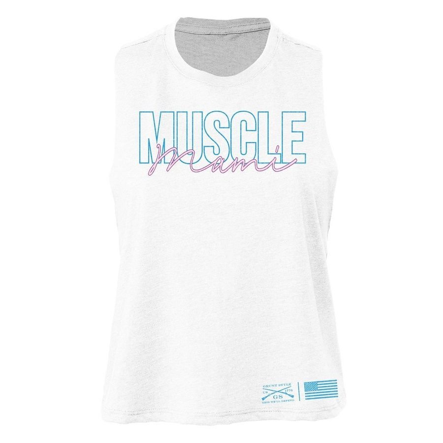 Women's Muscle Mami Racerback Cropped Tank - White