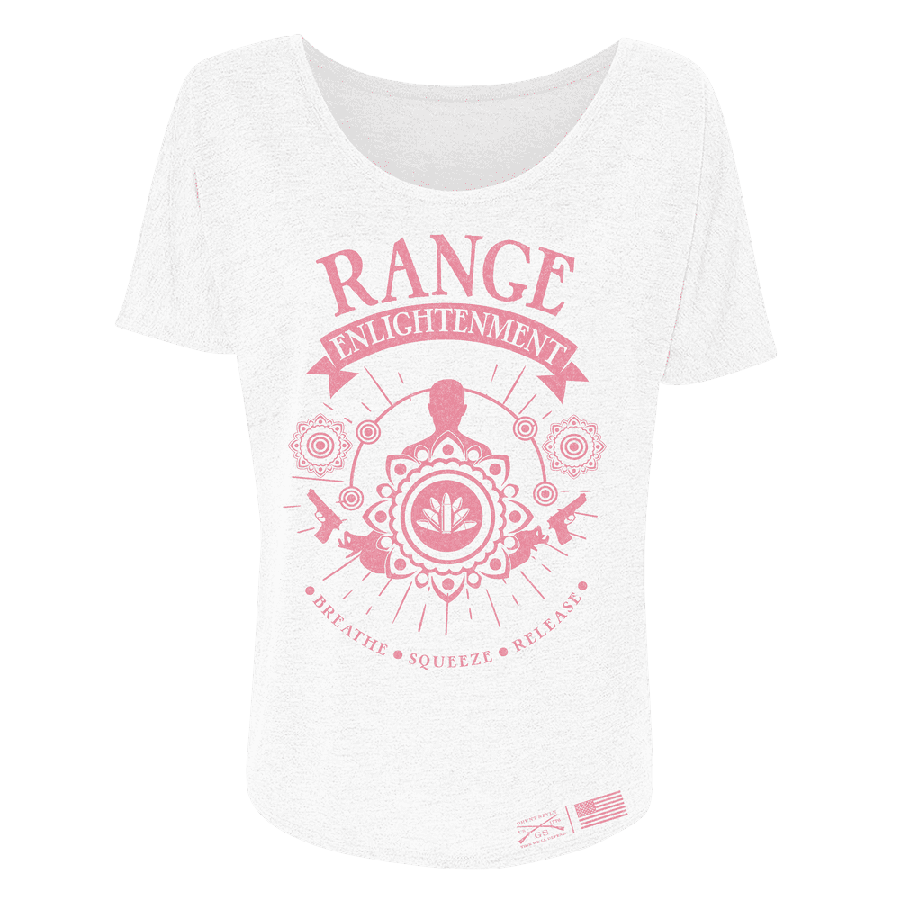 The Women's Range Enlightenment Slouchy Fit T-Shirt in White is for the freedom-loving, range-owning badass who finds her peace behind iron sights. With a relaxed slouchy fit and lightweight fabric, this tee brings comfort without compromising your edge. Whether you’re dialing in zero or just spreading a little 2A wisdom, this shirt was made for those who live by the motto: armed and aware.