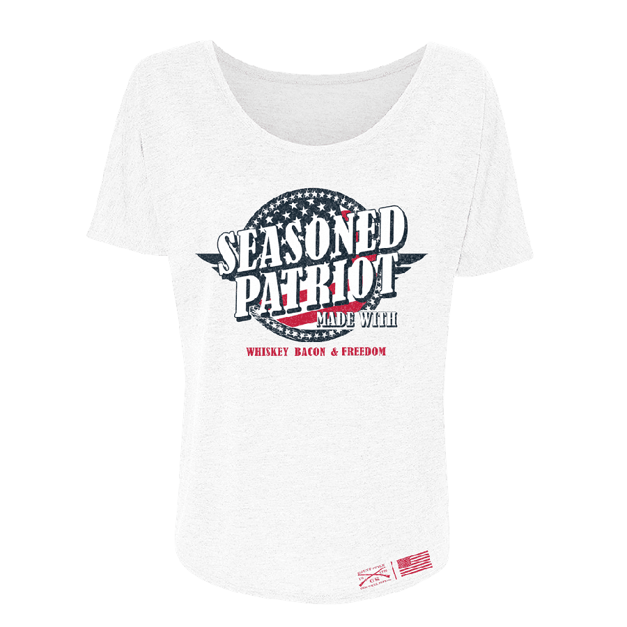 Seasoned, fierce, and unapologetically free. The Women's Seasoned Patriot Slouchy Fit T-Shirt in White is for those who know that patriotism never goes out of style. With its relaxed, slouchy fit and effortlessly bold design, this tee is perfect for women who’ve seen it all, done it all, and still stand tall. Whether you’re kicking back at the beach, manning the grill, or leading the charge, this shirt keeps it comfortable, classic, and undeniably patriotic.