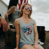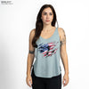 The Still Standing Flowy Tank in Stonewash Denim is a powerful symbol of American resilience. No matter the battles we face; foreign or domestic, our flag stands tall, a testament to the grit, sacrifice, and unwavering spirit of this great nation.