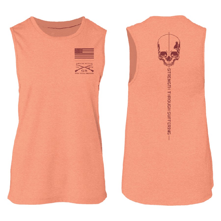 The strong will prevail, in Heather Sunset! Bring some color to your workout or daily errands with this new extension of the top selling "Strength through Suffering" graphic. Shop the women's every day tank top and unleash your summertime potential.